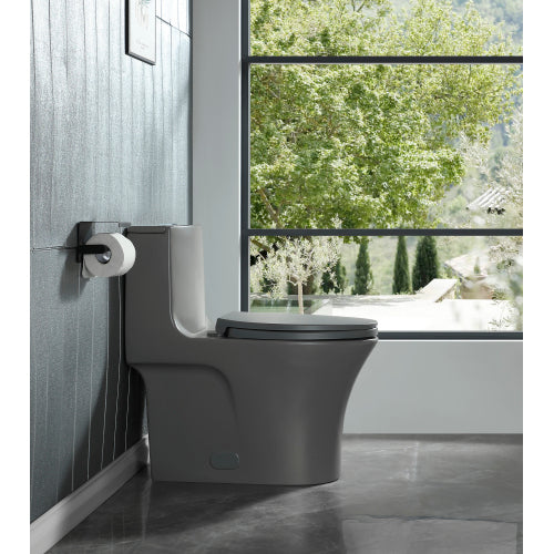 Dual Flush 1-Piece Elongated Toilet with Soft-Close Seat - Light Grey -15 1/8 Inch 1.1/1.6 GPF