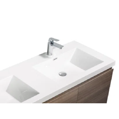 71'' Wall Mounted Double Bathroom Vanity in Rosewood With White Solid Surface Vanity Top