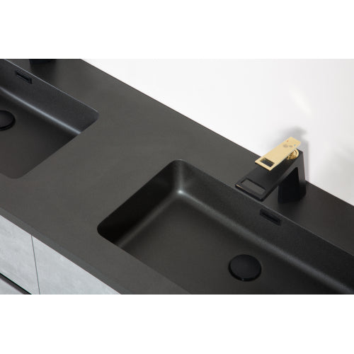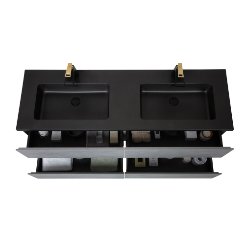 60'' Wall Mounted Single Bathroom Vanity in Ash Gray With Black Solid Surface Vanity Top