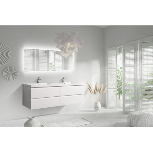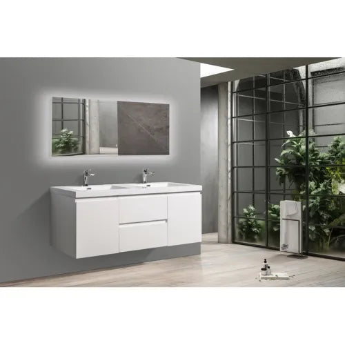 59'' Wall Mounted Double Bathroom Vanity in Gloss White