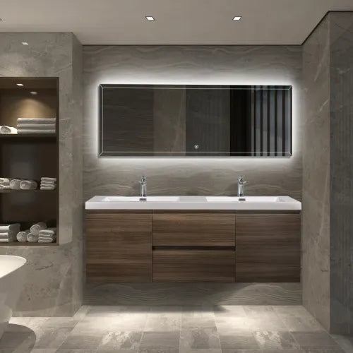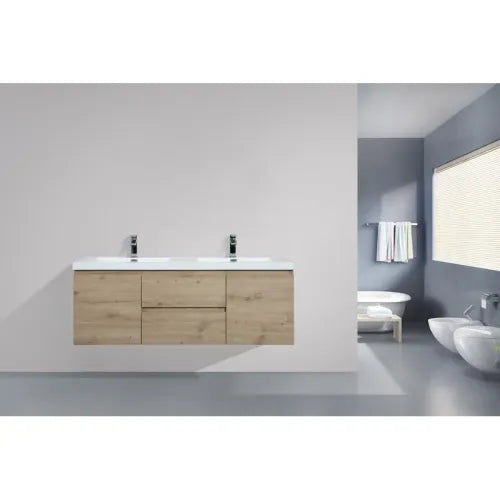 59'' Wall Mounted Double Bathroom Vanity in Natural Wood