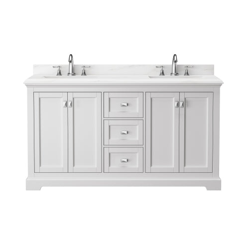 60-inch White Vanity Sink Combo featuring a Marble Countertop, and Bathroom Sink Cabinet